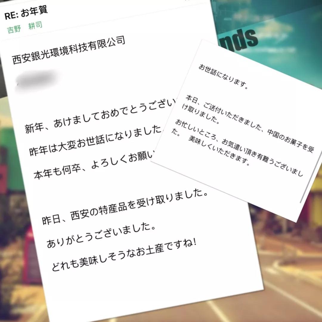 過去一年,受到日方公司的很多關照。從采購、產品研發、產品問詢、產品修理等各個方面給予了我們很多幫助。為了感謝GRAFTON株式會社和光明理化學工業株式會社,2家公司長期關照,也為了讓他們可以感受到中國新年的氛圍,我們精心挑選一些中國特產送給他們。這些沉甸甸的禮品從距離東京、神奈川3000多公里的西安,送到他們手中,同時也直接的傳達了我們的心意。
