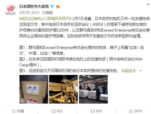 日本政府向武漢運輸支援物資