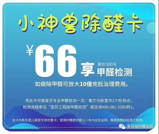 其他女性用戶,可獲得小神獸除醛卡:原價300元的甲醛檢測,活動特惠價66元(如做除甲醛可放大10倍充抵治理費用)。