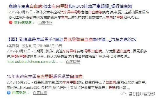 隨后,在2019年3·15上也曝出多家品牌汽車涉及甲醛超標(biāo)問題。